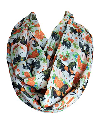 Product DescriptionHorses and Flowers Design Infinity Scarf White Double Layer Chiffon Scarf Loop Scarf, Circle Scarf, spring - fall - summer - winter fashion0
