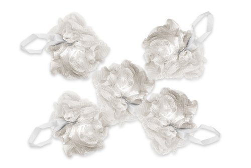 Mesh Pouf Bath Sponge Quality Soft (5 Pack) - White (White)