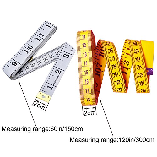 - DUAL SIDED MARKINGS - Both sides are marked with centimeters and inches,and the measuring range is 120inches/300cm and 60inches/150cm,can meet your different requirements.