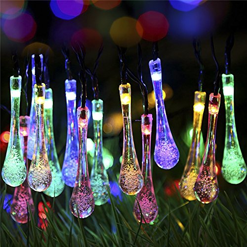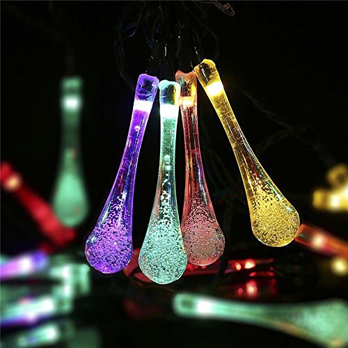 S&G Fairy Garden Lights, Multi-Color 7.85M 40 Solar Powered Waterproof Water Drop String Lights Christmas Decoration LED String Light for Outdoor, Garden, Patio, Yard, Home, Christmas Tree, Parties