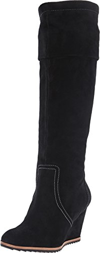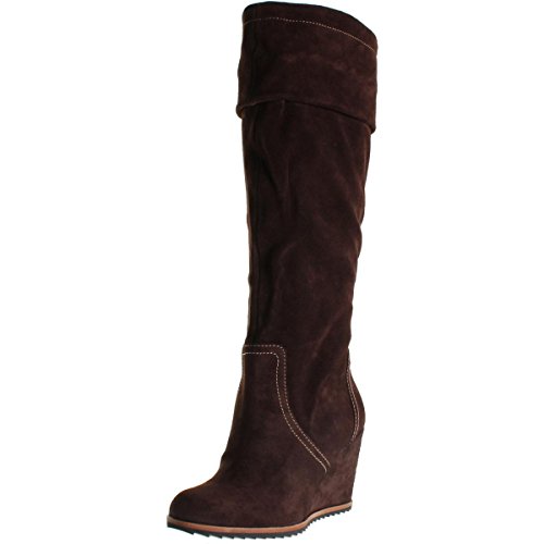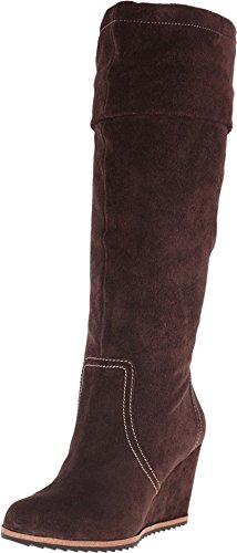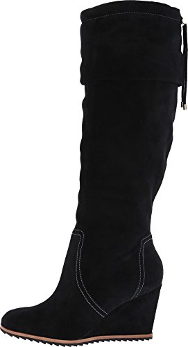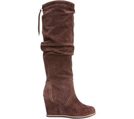 Adjustable string at the calf for a custom fit. Covered wedge with no-slip rubber sole. Synthetic lining and sole. Memory foam cushioned leather footbed. Imported.
