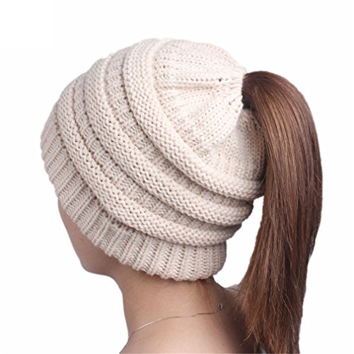 | (HENGSONG)/Accessories/Hats/DIRECT FROM USA/HENGSONG Women's Girls Winter Cable Ponytail Beanie Warm Fleece Lining Knit Skull Hat Ski Cap |