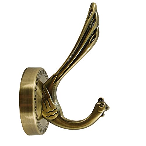 HERNGEE Peacock Hook Satin Bronze Finish Coat and Hat Hook with Round Base, Set of 2