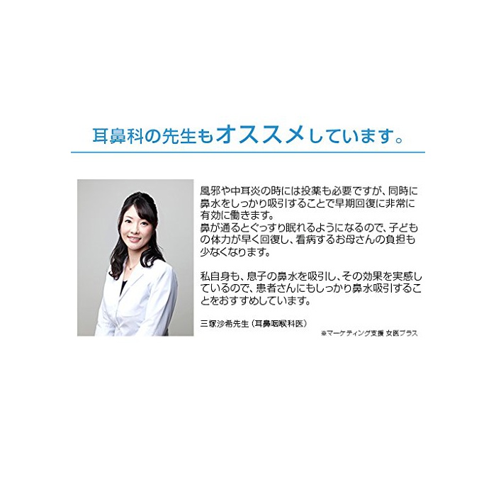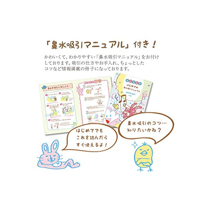 부속품:흡인기 본체,전용AC어댑터,흡인 튜브,노즐 커넥터,실리콘 노즐소2개,취급 설명서,만화 콧물 흡인 메뉴얼,첨부 문서