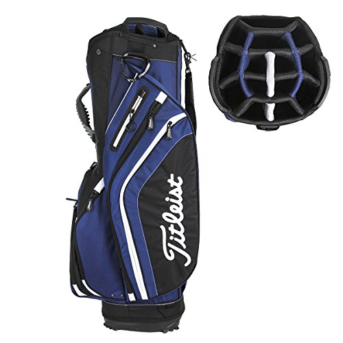 Classic styling, with excellent storage space, and bright colors, the Titleist Men's Lightweight 14-Way Cart Bag can make a great round even better. Easy-lift handles make loading your bag a breeze so you don't have to waste time getting to the course. Numerous pockets mean you'll never have to leave something at home because you ran out of space.