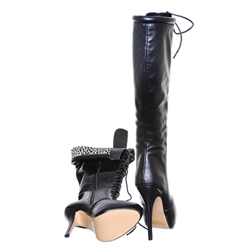 Product DescriptionChic knee-high platform boots feature round toe silhouette and fierce stiletto heels. Lace-up and size-zip designs keep a adjustable fit for your comfort wear.0