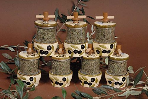 French Inspired Ceramic Herbes de Provence Grinder - Cream with Olive Design