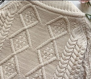 柔らかな質感をしっかり活かし、部位により変化のあるパターンで編み上げています。