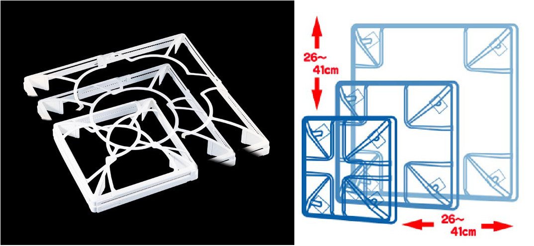 ● Ventilator fan cover that allows the frame to slide and to enlarge and reduce the size of the frame freely
