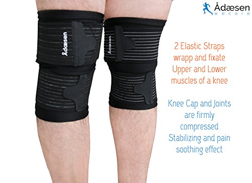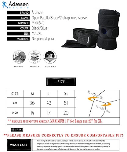 Adæsen Knee Support 2in1 Bundle Specially combined best Knee Support designs into 1 bundle to give our customers best solution. Each pair gives separate type of compression. In combination these Braces will 100% protect and support your injured Knee. Medically proven effect to treat dislocated knee cap, swollen, torn or sprained ligament, joint wrench, muscle tear, inflammation and blood flow disorder. Light design for active life Designed for active people who likes sport, running, hiking, traveling and simply daily use. Long straps let precisely compress and control pressure to improve blood circulation and reduce pain. Soft and thin material gives you comfort and perfect fit. Under armor soft lycra sleeve is totally invisible inside clothes. 3 velcro Neoprene Protector Neoprene protection brace is medically proven treatment for post injury period, pulled muscles and broken bones. Use velcro to fix brace in best position to support and stabilize your bones and foot muscles. This product is suitable for treatment of Anterior cruciate ligament injury (ACL), torn Meniscus injury, arthritis, patellofemoral syndrome, cartilage, medial knee injuries, ruptured tendon, tendonitis, bursitis, iliotibial band syndrome, fractures and muscle weakness. Product Measures Brace height: 9,05 in. Brace upper velcro length: 25,6 in. Brace middle velcro length: 18,7 in. Brace lower velcro length: 22,83 in. Knee cap diameter: 1,56 in. Sleeve length: 8,46 in. Sleeve diameter: 6,5 in. 2 Elastic strap length: 20,47 in. Package content 1 neoprene protector (left, right) 1 stabilizer with 2 strap 0 |