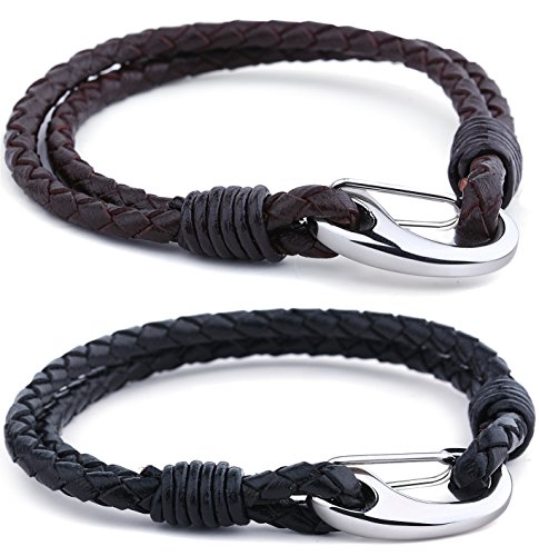 -. Title : Jstyle[ジェイスタイル] 【二点セット】 ブラック&ブラウン メンズ レザー ブレスレット 本革&ステンレス シンプル ブレスレット 腕輪