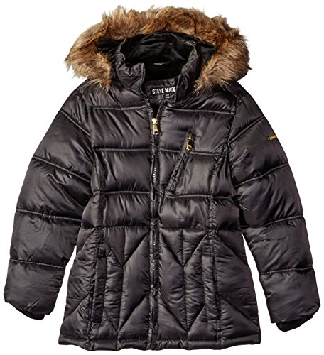 Attached hood is lined and faux fur trimmed