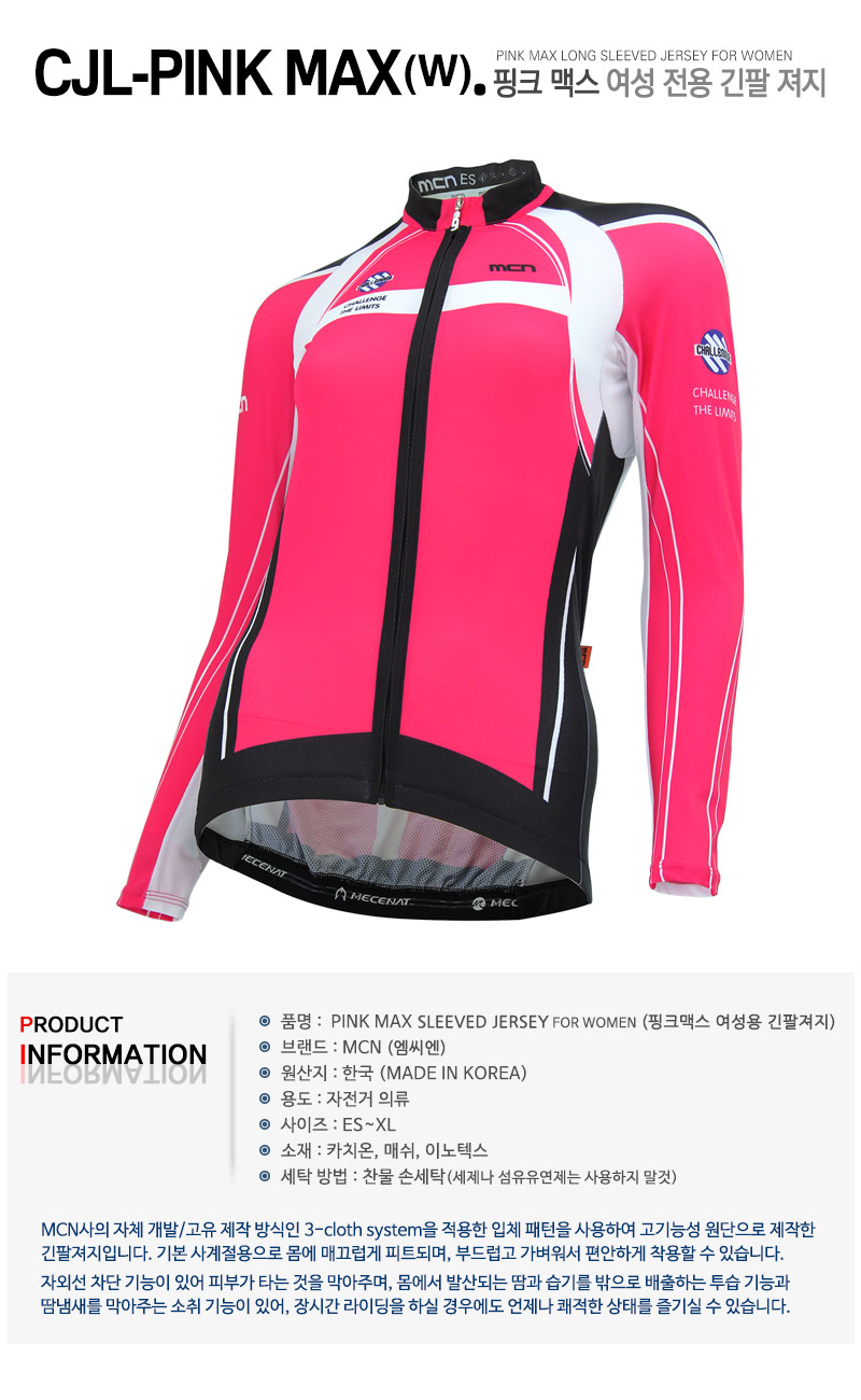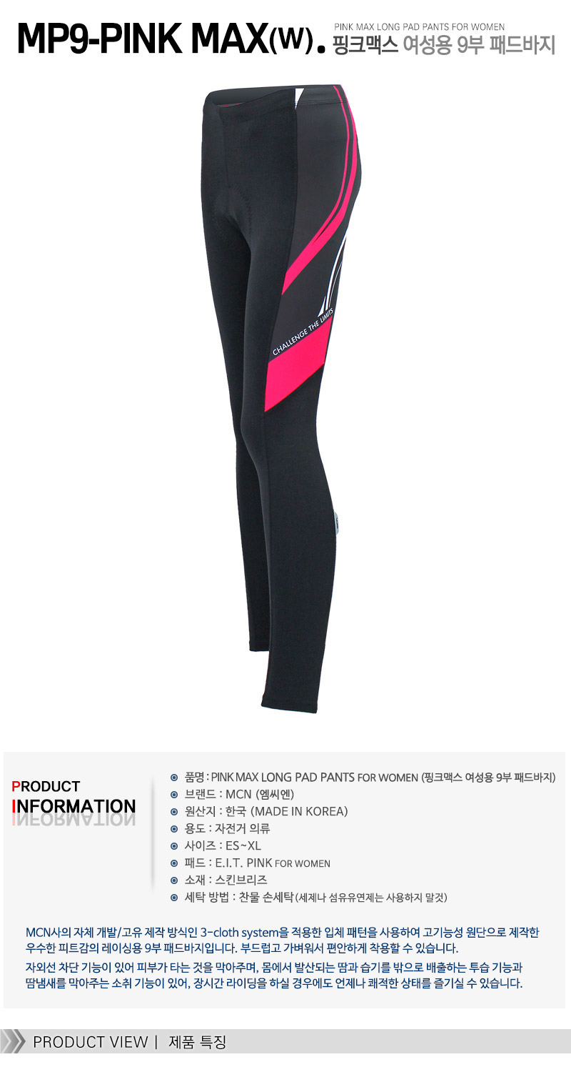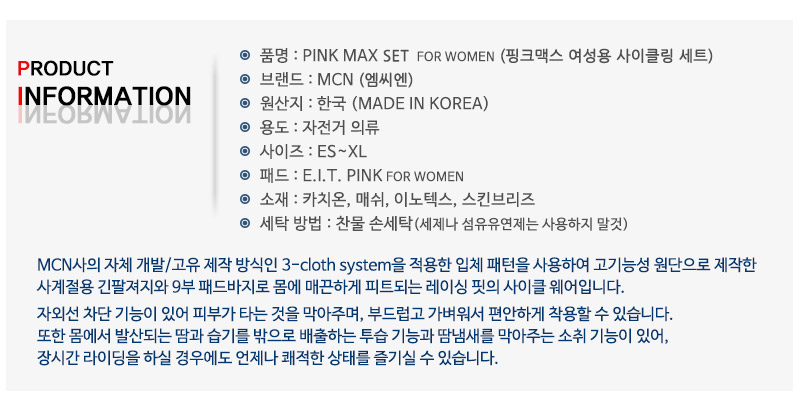 - 품명 및 모델명MCN 핑크 맥스 여성전용 사이클링 세트