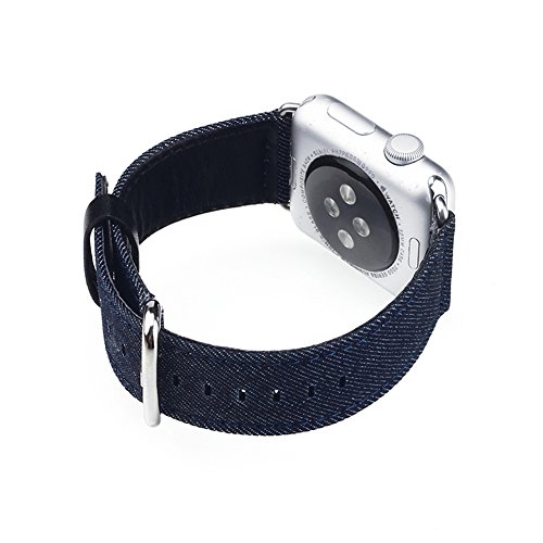 -. Title : LiQi Apple Watch Band, Denim Jean style Replacement Cloth Genuine Leather Wristband Bracelet Strap with Stainless Steel Buckle for Apple iWatch & Sport & Edition (Denim Jean Dark blue)
