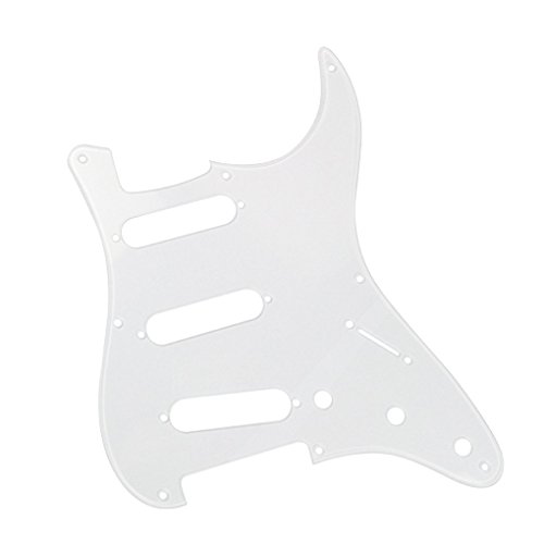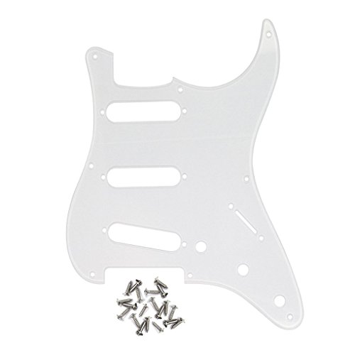 Product Description Feature:* Fits for Most US Vintage 8 Holes Fender Style Strat Style/ 50s ST Style Guitar Parts Replacement.* Pickguard with pure aluminum foil shield on the backside, not the common aluminum-foil paper on the market, better shielding property and anti-interference.* All materials are environmentally friendly, thermostability, no smell. multi-layer plates are pressed under high temperature and pressures, to make them close integration between each layer, will not appear curly, deformation, or separation of different layers.* Excellent product process ensure the edge of the smooth and structured.* Two layers of protective films on the top of pickguards, anti-scratch to protect the guitar.Specification:* Item: 1pcs 8 Hole SSS Guitar Pickguard 25pcs Screws.*Pickguard Style:SSS (single/single/ single coil) style pickguard; 8 screw mounting holes in the side of pickguard, with pure aluminum foil shield on the backside.* Material: 1Ply, made of 1Ply Acrylic.* Color: Transparent Clear.*Size: as the size pictures shown. (please allow 1-2 mm error due to manual measurement.)*With protective film on the surface, while using please split it off.Note:item's color might be different from the picture because of the aberration.Package Includes:1 x Guitar Pickguard25 x Screws 0