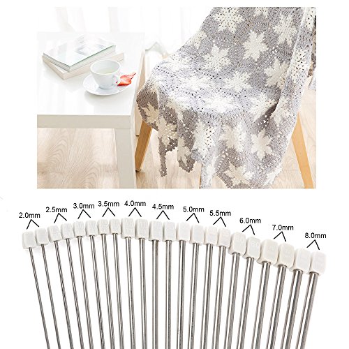 Knitting Needles,Htianc 11 Pcs Stainless Steel Knitting Needles - 14" in Sizes 2 mm to 8 mm White
