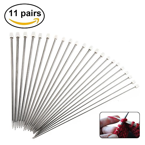 Knitting Needles Set:Meet all your knitting needs with this 11-pair set of beautiful stainless steel single-pointed straight knitting needles.They have standard points and are polished to a smooth finish for fast knitting with no snagging or catching.