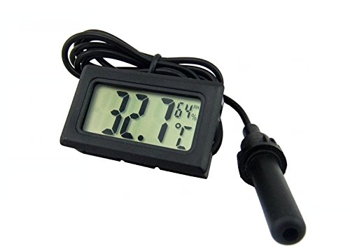 ETHMEAS Mini Digital Temperature Humidity Meter Gauge Thermometer Hygrometer with LCD Display and 1.5M Long Probe Black for Vehicle, Aquarium,Reptile,Room, Gardening, Pet Keeping, Humidor Incubator