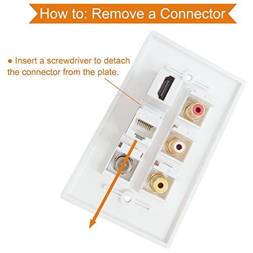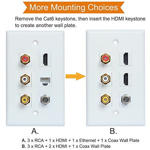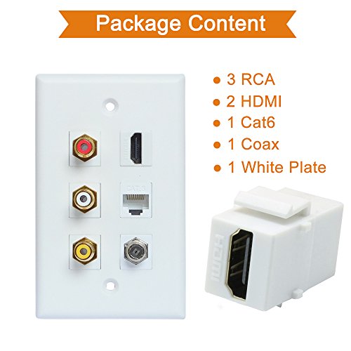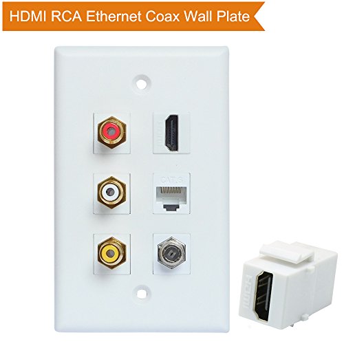 HDMI RCA Coax Ethernet Wall Plate, ESYLink HDMI Coax Ethernet RCA Wallplate - 3 RCA + 2 HDMI + 1 Coax Cable TV Port + 1 Ethernet Port