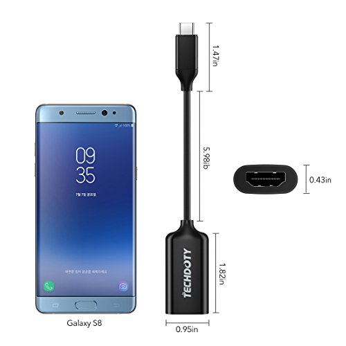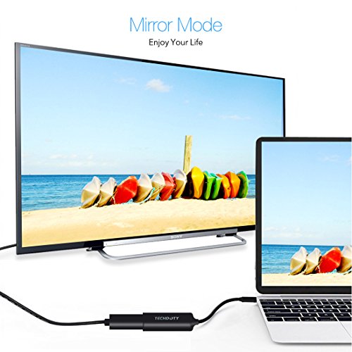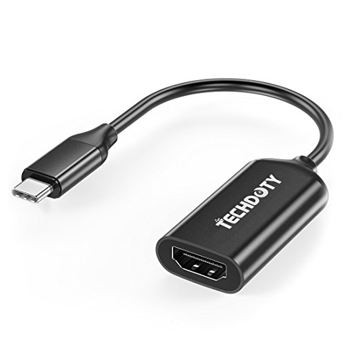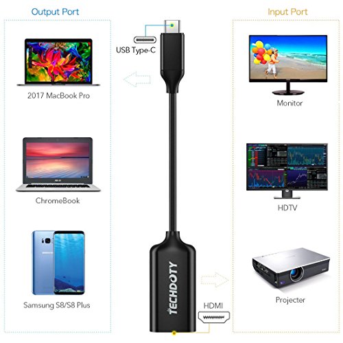 Studio : TECHDOTY Publisher : TECHDOTY Binding : Electronics Product Description USB C to HDMI Adapter TECHDOTY USB C to HDMI Adapter lets you connect a USB Type-C device to the HDMI port of an HDTV or projector to display video and audio. a)-Connect USB-C phones to HDMI enabled TVs and Displays b)-Connect USB-C laptops to HDMI enabled Displays or TVs c)-Connect USB-C phones/laptops to HDMI enabled Projectors (PS: The laptops compatible models, please read below details.)