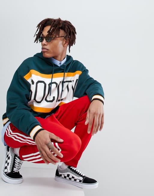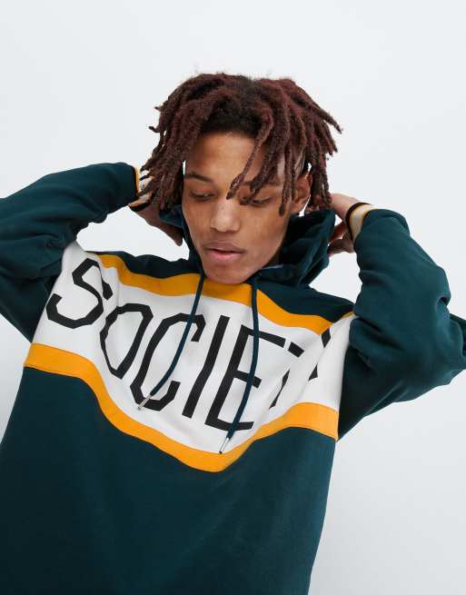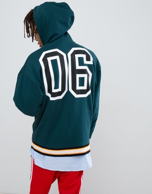 ASOS DESIGN oversized hoodie with color block text print in green