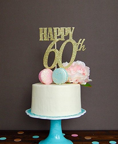 Astra Gourmet Gold Glitter "Happy 60th" Birthday Cake topper, Forever 60 Party Favors, 60th Birthday Party Decoration