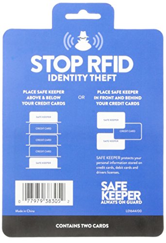 -. Binding : Apparel -. Brand : Safe Keeper -. Department : mens -. Feature : Each Safe Keeper pack features 2 RFID blocking cards / Place both cards in your wallet to keep your wallets and your ID safe / 100 percent metal and man made materials -. Label : Mundi Westport Child Code -. Manufacturer : Mundi Westport Child Code -. Model : L01644 -. PackageQuantity : 1 -. ProductGroup : Apparel -. ProductTypeName : ACCESSORY -. Publisher : Mundi Westport Child Code -. Studio : Mundi Westport Child Code -. Title : Safe Keeper Men's RFID Blocking Card