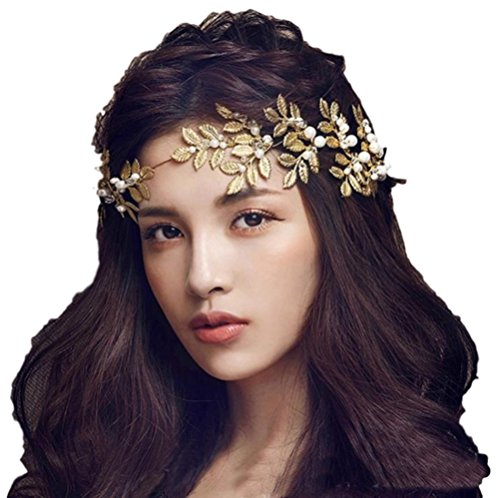 -. Title : 【XPデザイン】 チェーン ティアラ シャイニング ヘッド ヘア ジュエリー ヘアバンド 髪飾り だんご (パールゴールド ガーランド)