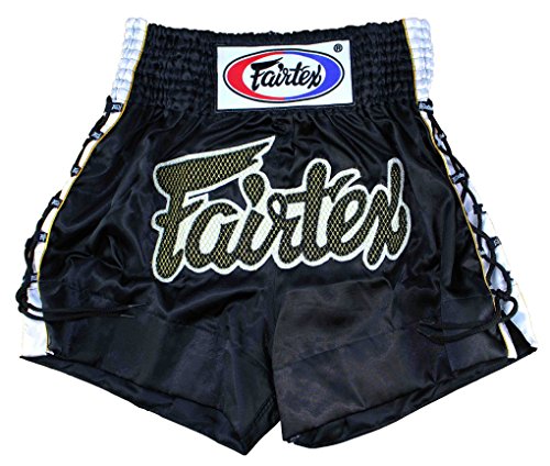 Studio : FAIRTEX COMPANY LTD Publisher : FAIRTEX COMPANY LTD Binding : Misc. Product Description BS0601 Fairtex Black Laced Sides Muay Thai Shorts are 100% Satin handmade in Thailand and offer a modern take on the standard designs for Thai boxing. With the famous Fairtex logo across the front of the garment; deep waistband and typically excellent quality. Fairtex have been producing Muay Thai equipment since 1993 and are well known in the sport as a brand who put development and style at the forefront of their products. 0