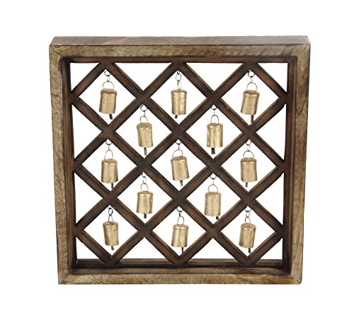 Deco 79 27363 Wooden Framed Metal Bells Wall Décor, Brown/Darkbrown/Gold