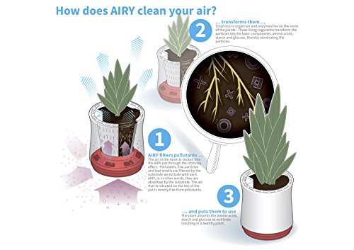 incl. expanded clay as a drainage layer for the water supply incl. activated carbon for filtration of pollutants incl. AIRY-book (100 pages) with full information on air-purifying plants and pollutants (VOC's)