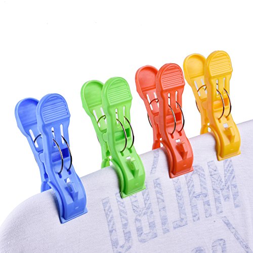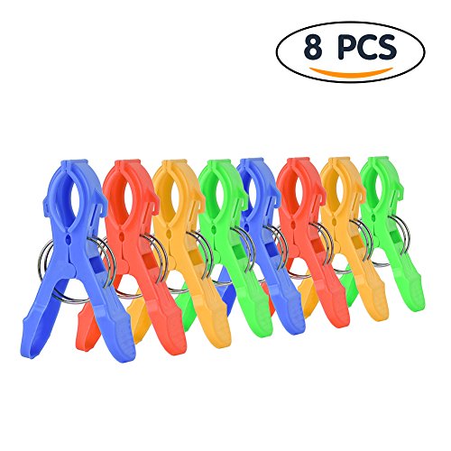 Shintop 8 Pack Beach Towel Clips Keep Your Towel From Blowing Away Great for Clothes Lines, Beach Chair or Pool Loungers(4 Colors, Jumbo Size, 5”)