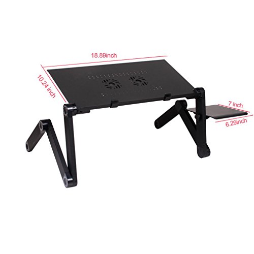 -. Feature : Size:19.2L*10.4W*19.6H Inch.----★5-7 days Fast Delivery form US / Silent built-in fans - cool your laptop on USB power / Side tray to hold mouse, drink etc. / Highly functional with multiple uses. Easy storage and portability. It weights 5 pounds and can support up to 30 pounds capacity. / Collapsible frame for easy storage and portability. Can be set in multiple angles to fit any body position, even laid back on your bed; just hold the button on the joints, change the position, and release the button to lock it in place