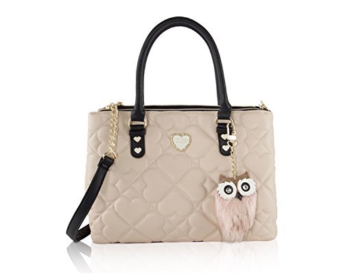 Carry everything you need in style this with this adorable 3 Compartment Tote bag from Betsey Johnson. Made of PVC quilted faux leather, and Betsey Johnson signature logo. hanging charm keychain dangle makes it fun and flirty. Gold color hardware, Double top handles with 8 drop, Magnetic closure opens to fully lined interior with multi functional compartments. It Brightens up your outfit with a pop of personality.Feature