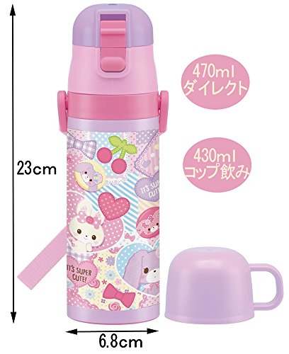원본상품명: スケ?タ? 超?量 2WAY ステンレスボトル 水筒 コップ付き 470ml 保? 保冷 ぼんぼんりぼん パッチワ?ク SKDC4