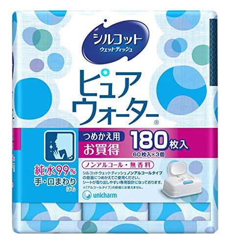 "Silkot Wet Tissue Pure Water refilling 60 packs 3 packs" is a refillable refill of a soft thick wet tissue "60 Silkot wetted tissue main body" that can be taken out with one hand.