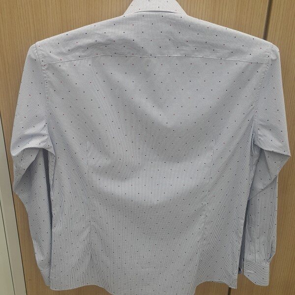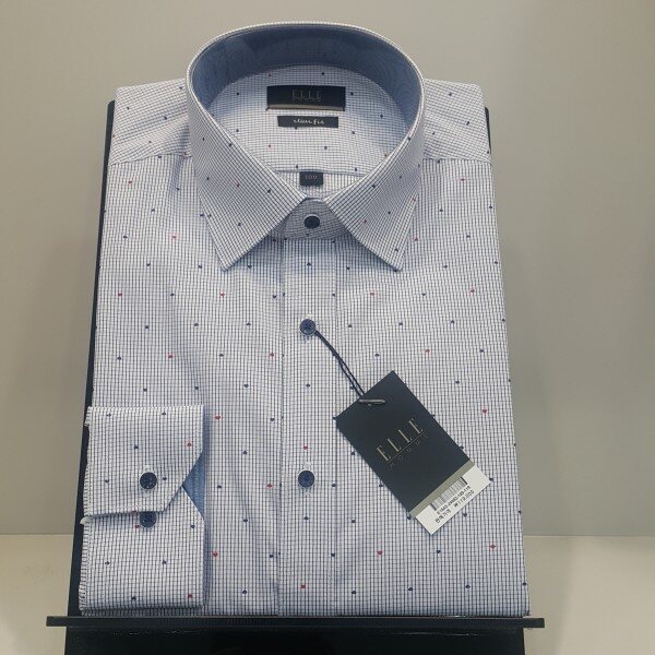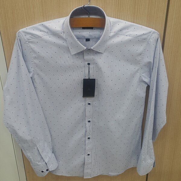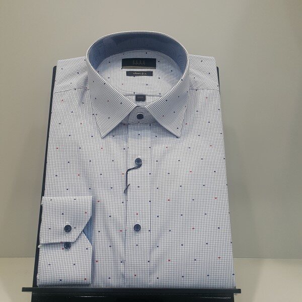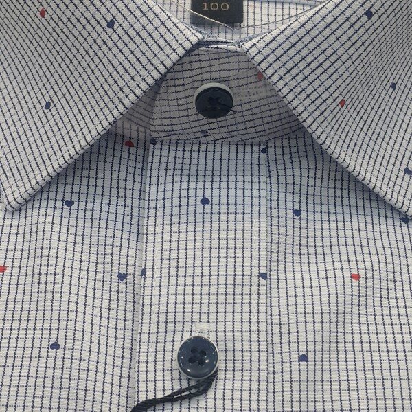 화이트 바탕에 잔체크 패턴에 이중으로 하트 도트를 포인트를 준 셔츠입니다슬림핏 면.폴리 혼방 상품입니다