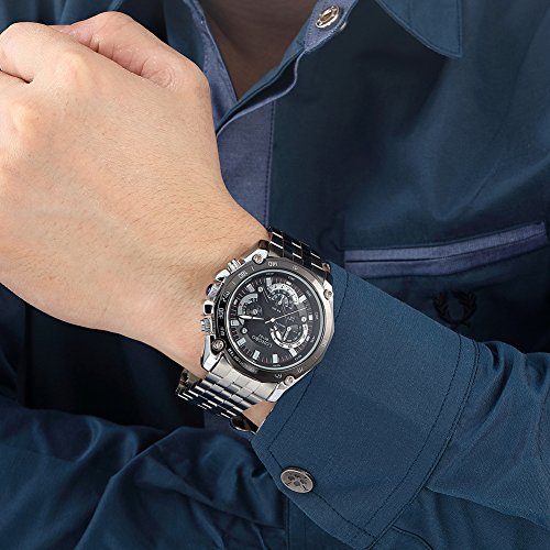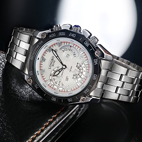 -. Feature : 本体:重量:131g 直径:41mm 厚み:13mm ケース素材:合金 サファイアガラス / ステンレス バンド仕様:長さ:210mm 幅:20-29mm 色:シルバー / シンプルなデザインでアウトドアやスポーツにはもちろん、日常生活にもお使い頂けます。 / 「Rockyu」はトレンド×クラッシク、伝統×革新性を融合した商品をお客様に提供、現代ファッションを牽引する海外ブランドです。現在高品質の商品をAmazon経由で通販しておりますので、現在1万品を登録中。(リング、ネックレス、ブレスレット、バングル、時計、イヤリング、ピアス、財布、高級携帯ケースも導入の予定) / 背景の独立小さい三つ文字盤は装飾品です。右側三つのボタンは上下機能はありません。予めご了承ください。商品品質2年保証。