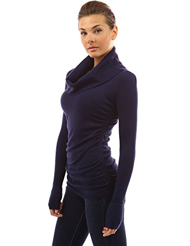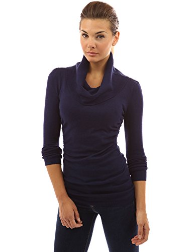 PattyBoutik Cowl Neck Long Sleeve Ruched Sides Stretch Pullover Blouse Tunic Sweater. Model in pictures is 5 feet 8 inches (173cm) tall.