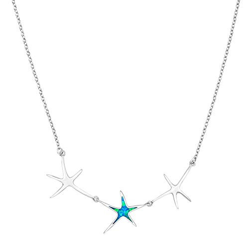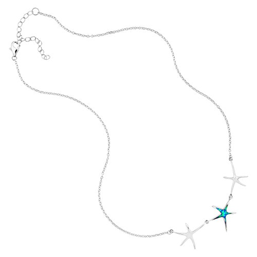 Celebrate summer year-round with the fun and flirty style of this necklace! Created blue opal inlays, infused with flecks of sea foam green, line the center starfish form for an unexpected pop of color. The necklace measures 2 ½ by ⅝ inches and is crafted with sterling silver, for the perfect combination of durability and shine. It also features a 16-inch sterling silver cable chain, plus a 2-inch extender with a lobster clasp.
