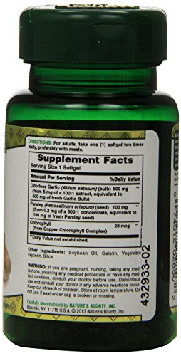 -. Title : Nature's Bounty Odorless Garlic and Parsley, 100 Softgels