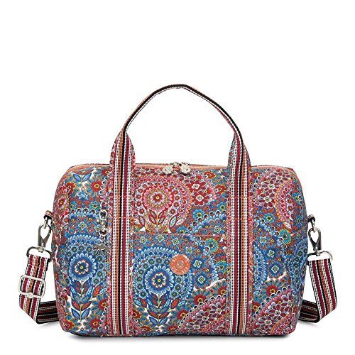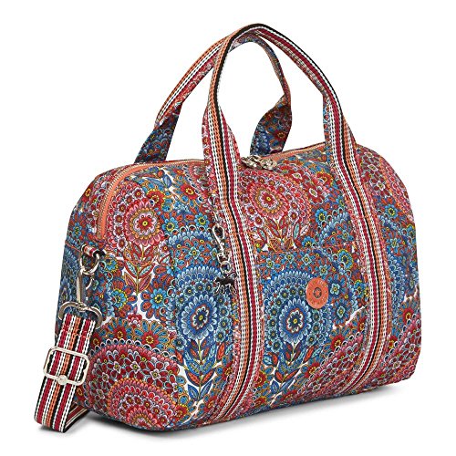 Product Description The Folami Handbag is chic and sporty handbag made for every day. It's unique duffle shape gives the handbag a fun athleisure feel, while ribbon details and monkey key charm add a soft feminine look. The handbags versatile design allows you to easily remove it's crossbody strap making it easy to tote around via the top handles or as a crossbody bag. Roomy interior offers space for your wallet, cell phone, cosmetic pouch, sunglasses and much more! Dimensions: 13.25" L x 9.5" H x 7.5" D Weight: 1.25 lbs 0