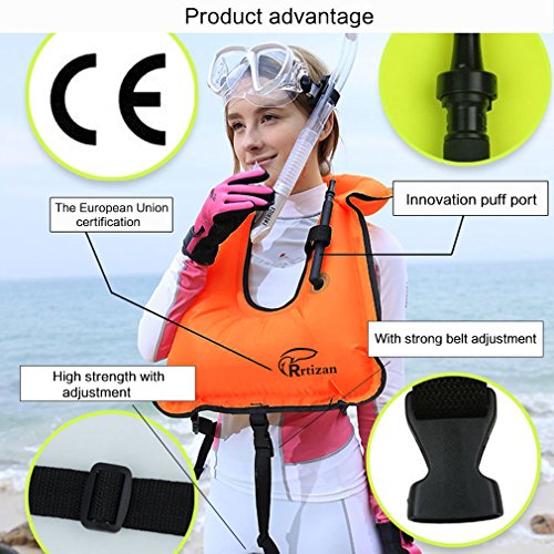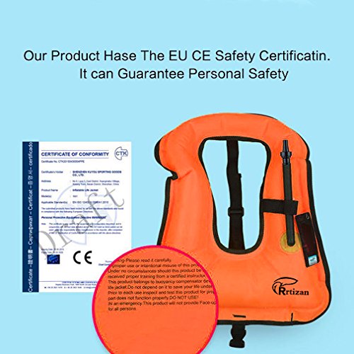 Rrtizan Unisex Adult Portable Inflatable Canvas Life Jacket Snorkel Vest For Diving Safety