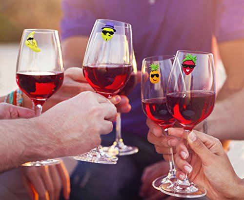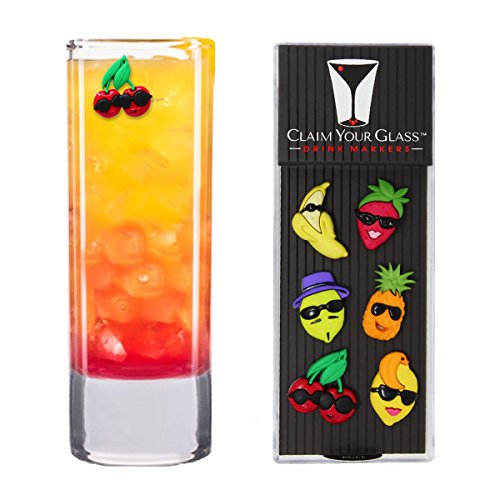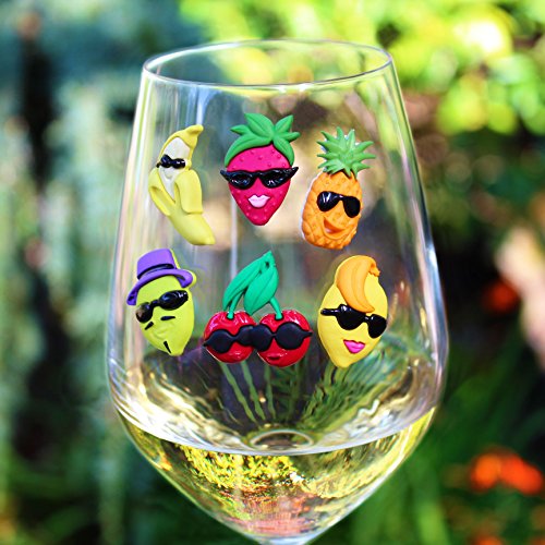-. Title : COOL FRUITS Magnetic Wine Glass Charms (Set of 6) by Claim Your Glass - Premium Drink Markers for Wine, Champagne, Beer, Cocktail Glasses - Includes Storage Case + Spare Magnet