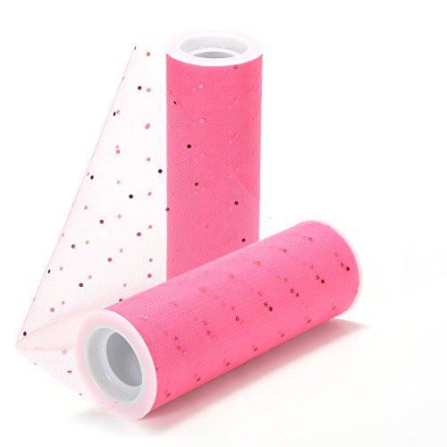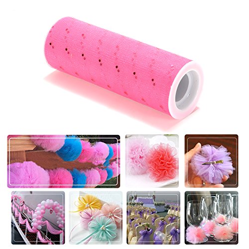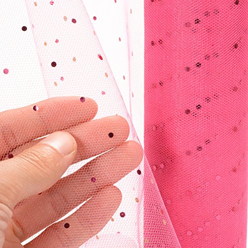 ★ DIY APPLICATION: Each Rose Red tulle roll is 6 inch x 10 yards.Easy to apply.Fashion sequin tulle rolls 10 yards sequins gauze for multiple purposes crafts DIY.The Rose Red tulle fabric roll is great for tutu skirts, pew bows,chair sashes,wedding decorations,wedding cars decoration,table decorations, wrapping favors and gifts,party ornament, inexpensive bows and more.This Rose Red sequin fabric roll doesn't require stitching or finishing, and it will not unravel.