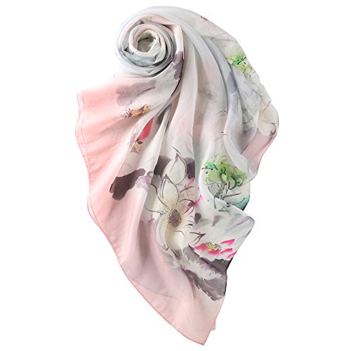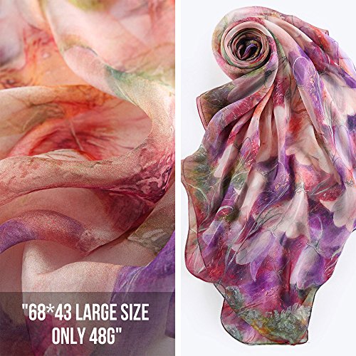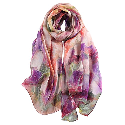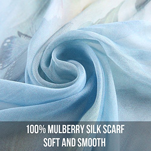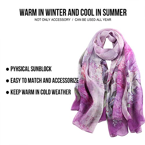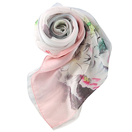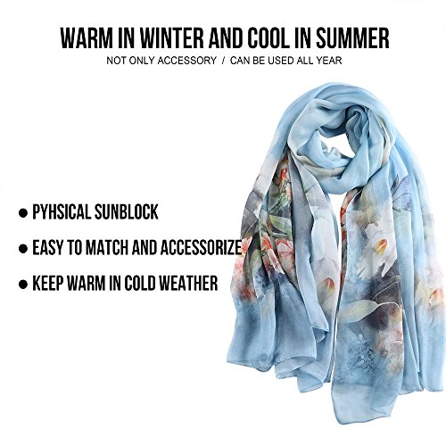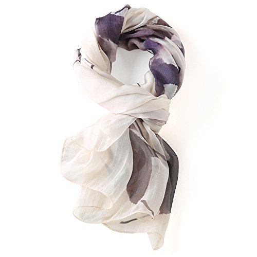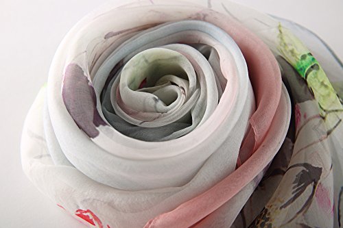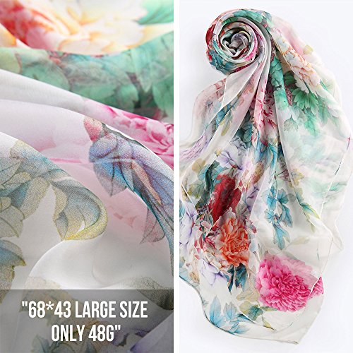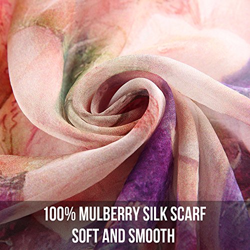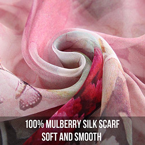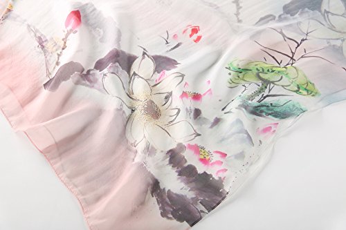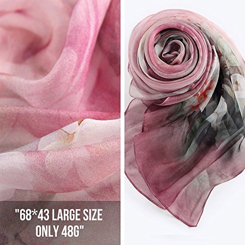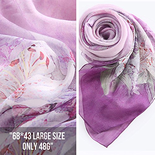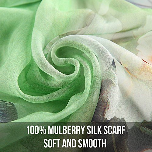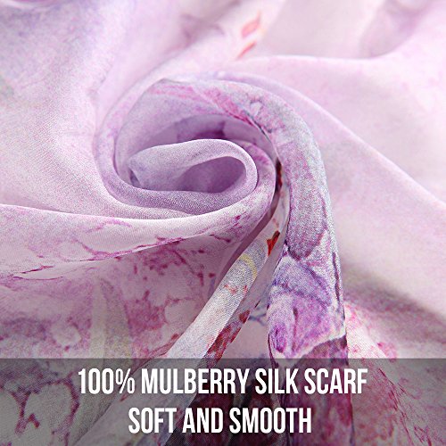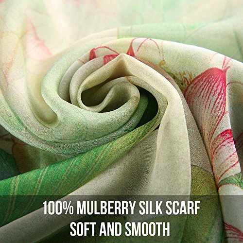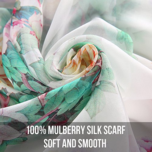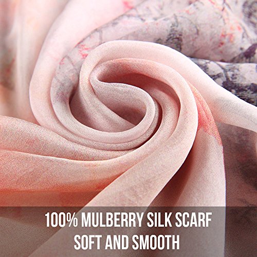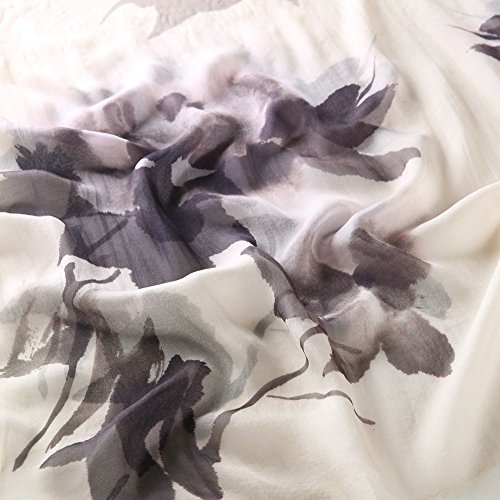 STORY OF SHANGHAI Women's Mulberry Flower Print Soft Large Silk Scarf Wraps 68*43 Inches