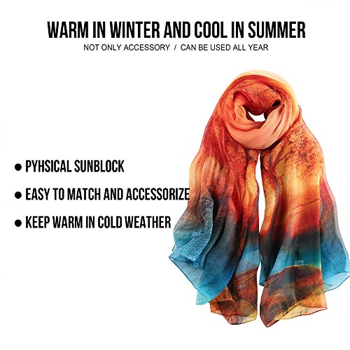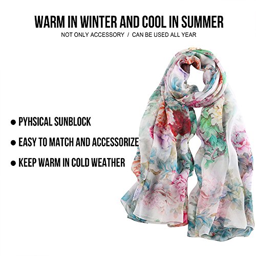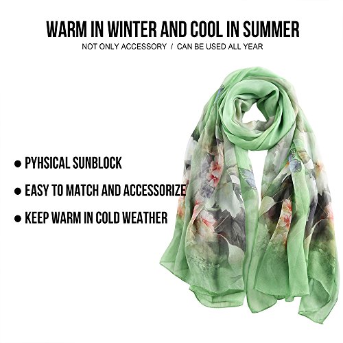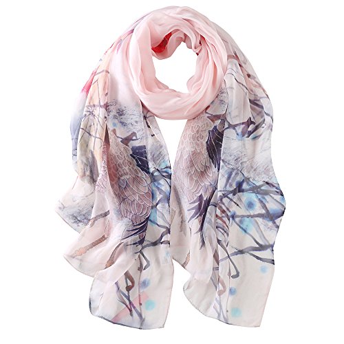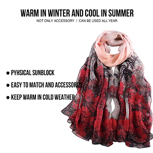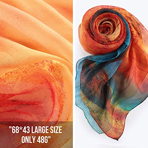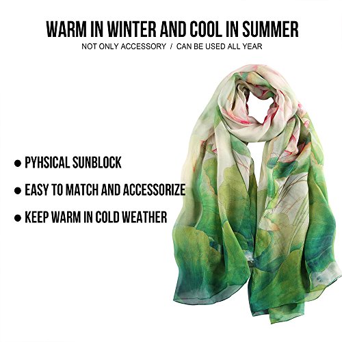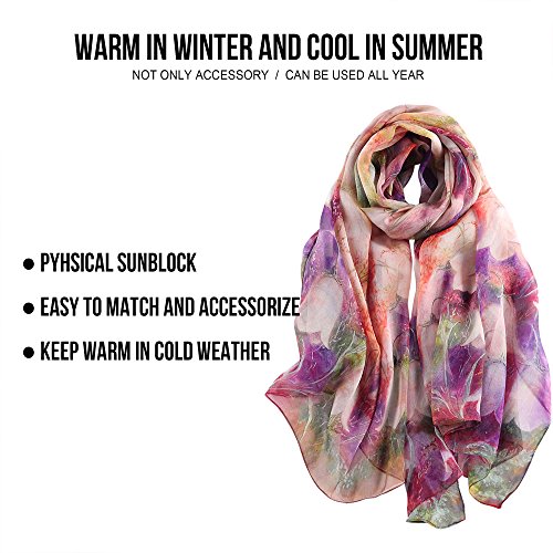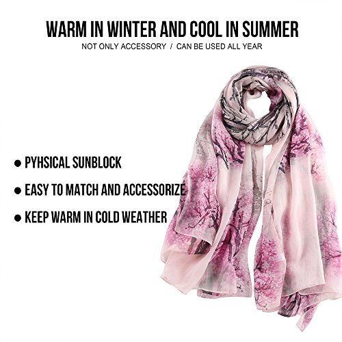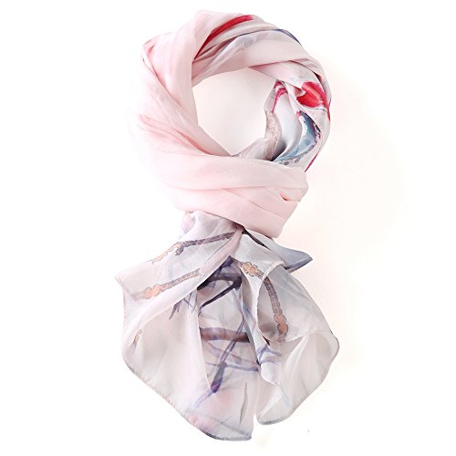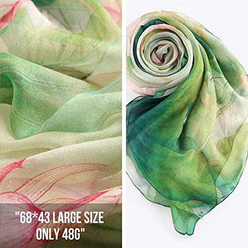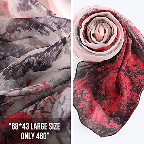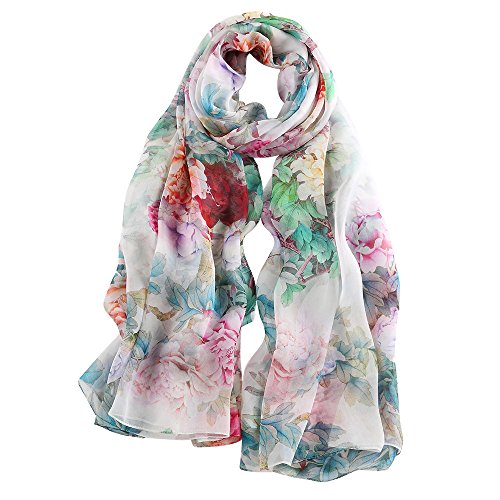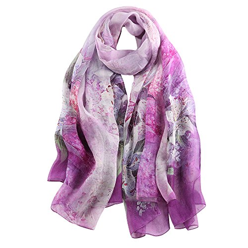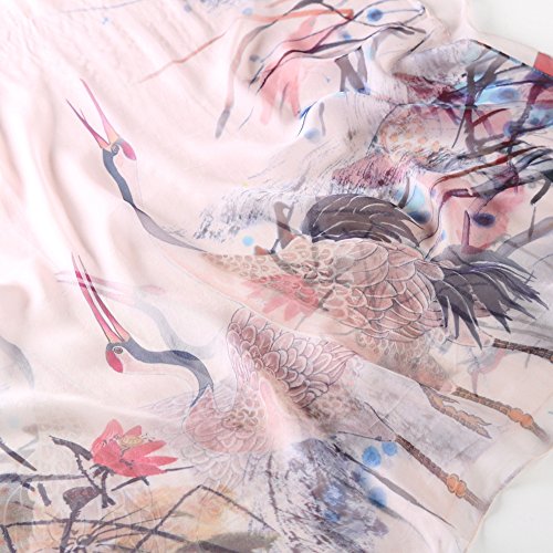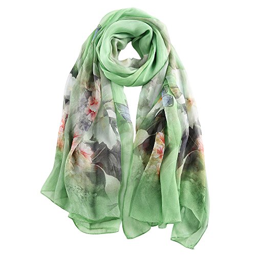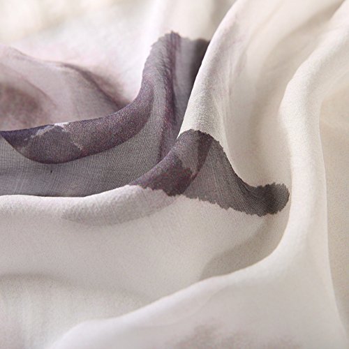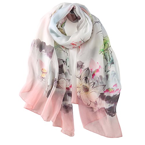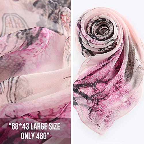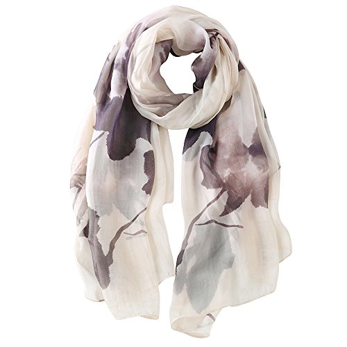STORY OF SHANGHAI Women's Mulberry Flower Print Soft Large Silk Scarf Wraps 68*43 Inches
