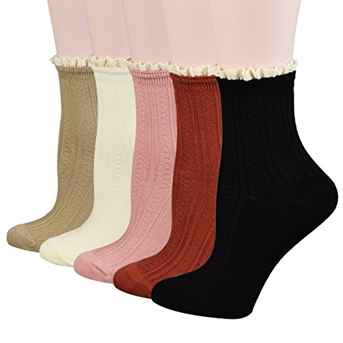 -. Title : Fitu Women's Vintage Ruffle Frilly Cute Rayon Bamboo Boot Socks 5 Pairs Pack
