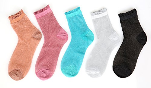 -. Title : Women's Shiny Pearl Socks Colorful Glitter Crew Socks