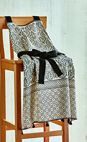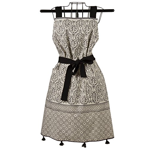 Tag 207125 Henna Block Print Apron, Natural/Black, 33.25"L X 32"W